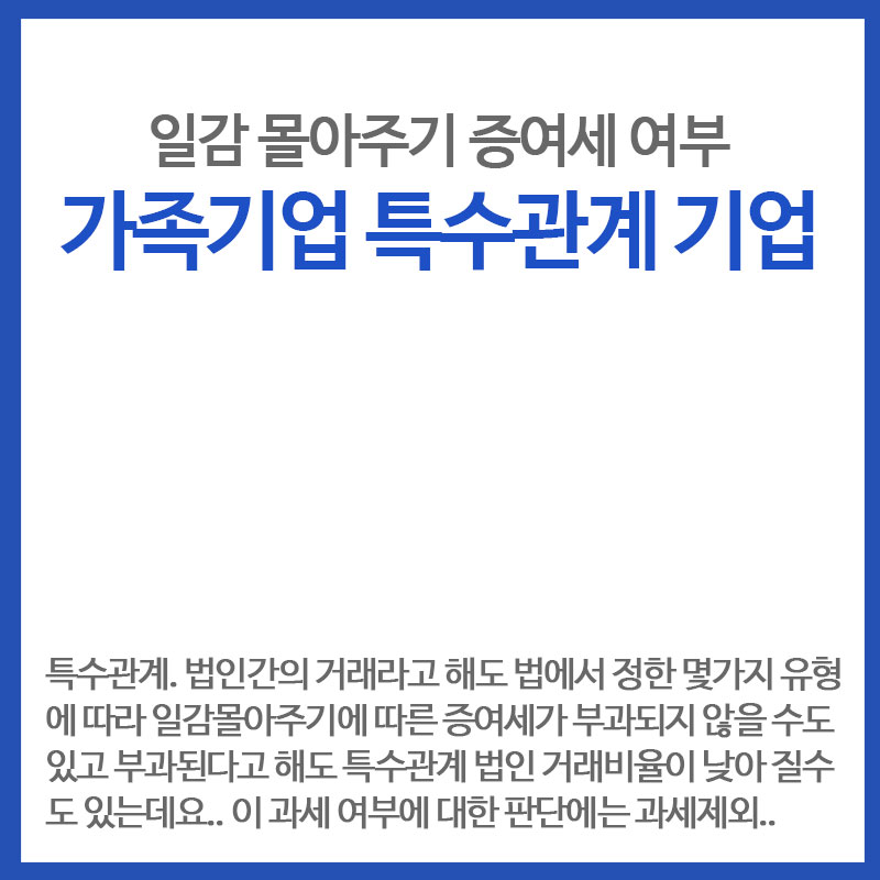가족기업간 거래에 대해 수혜기업에 대한 증여세를 과세하는 기준은 다양하고 복잡하지만 이번 포스팅에서는 특수관계법인 간 일감몰아주기에 대한 내용을 다루어 보았습니다.