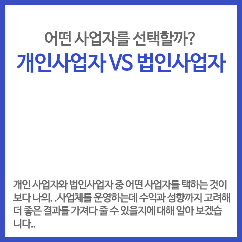 3. 개인 사업자와 법인. .사업자 선택시 고려해야할 사항들