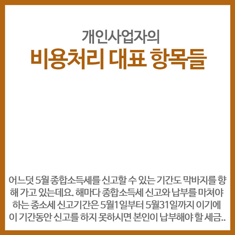 오늘은 종합소득세 신고시 개인사업자 분들이 비용처리를 받을 수 있는 부분에 대해 알아볼 건데요.. 아무래도 법인에 비해 프리랜서나 개인사업자 분들이 사업을 위해 사용한 금액을 비용처리받는 것은 좀 범위가 한정이 되어 있는 편이기는 합니다.