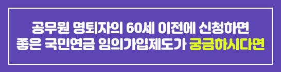 오늘은 1월17일까지 제출되어야 하는.. 누락되기 쉬운 연말정산 자료들에 대해 알아 보았는데요.. 지난 포스팅에서 소개드린 60세 이전 공무원 명예퇴직자의 국민연금 임의가.입 신청에 대해 궁금하시다면 위의 링크를 통해 확인해 보시기 바랍니다.