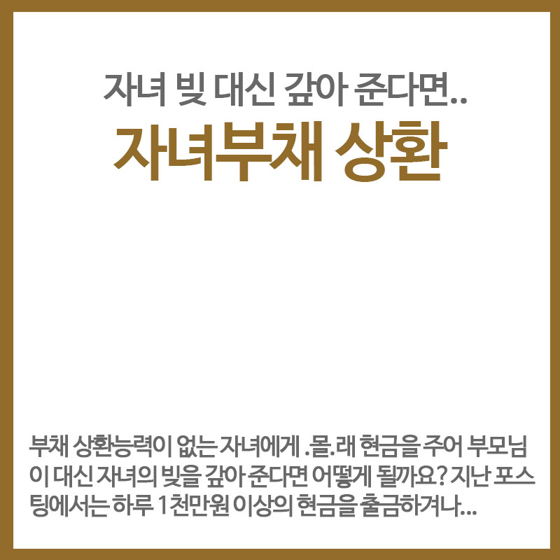 1. 자녀 빚을 부모가 .몰.래 현금으로 갚아 줄 수 없.는 이유