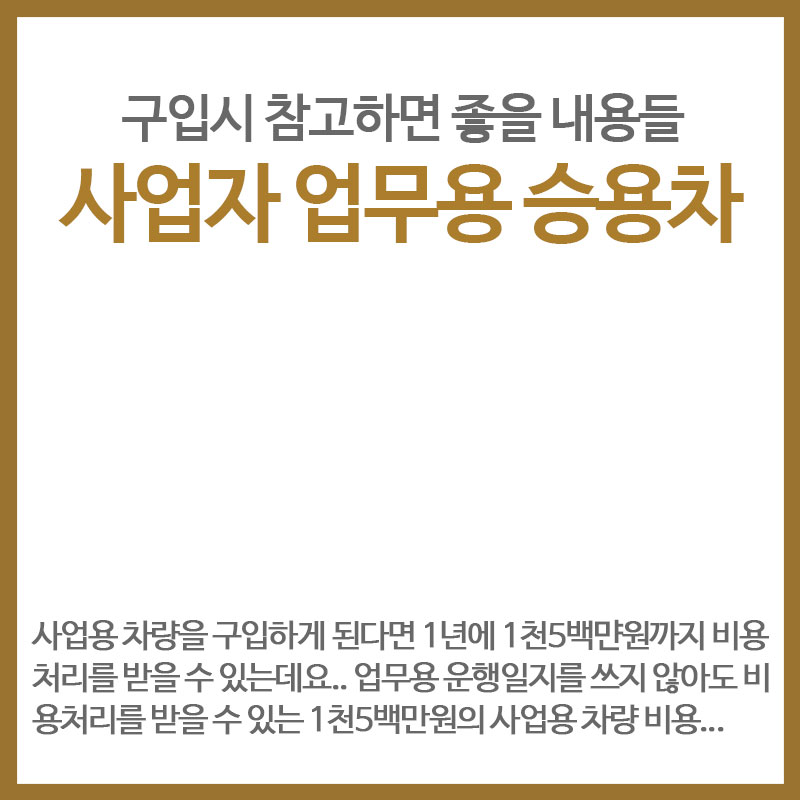 사업자가 .업.무용 승.용차를 구.매하려고 하신다면 일시.불이나 할부, 리스, 렌트 중에서 세금에 좀 더 유리한 방법을 고려하고 구.매하시게 될텐데요.. 하지만 업.무용 차량을 선택하실 때에는 세금 외에도 다양한 관점에서 따져 보아야 업.무용 차량을 이용하며 지출하는 비용을 최소화 할 수 있고 신경을 쓰게 될 일 .또한 줄일 수가 .있.습니다. 오늘은 업.무용 승용차를 구입할 때 사업주의 상황에 .가.장 적합한 선택이 될 수 있도록 다양한 관점에서 확인해 보도록 하겠습니다.