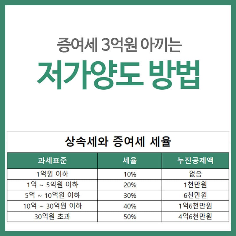 저가양도는 재산을 그냥 주는 것이 아닌 대가를 받고 주는 것이지만 시가보다 싼 값에 양도한다는 말입니다. 만약 부모가자녀에게 재산을 물려주게 되면 그 받은 재산에 대해. 발생하는 증여세는 받는 쪽이 납세자가 되어 증여세를 내야 합니다. 하지만 이 증여한 재산에 대해 .적용되는 세율이 무척이나 크기에 조금이라도 .자녀가 낼 증여세를 절새할 수 있.는 방법들을 찾아 보게 될 것입니다. 저가양도. 또한 수증자의 상황에 맞게 잘 활용을 한다면 무척 큰 금액의 .증여세를 절세하거나 증여세 자체가 없을 수도 있습니다.