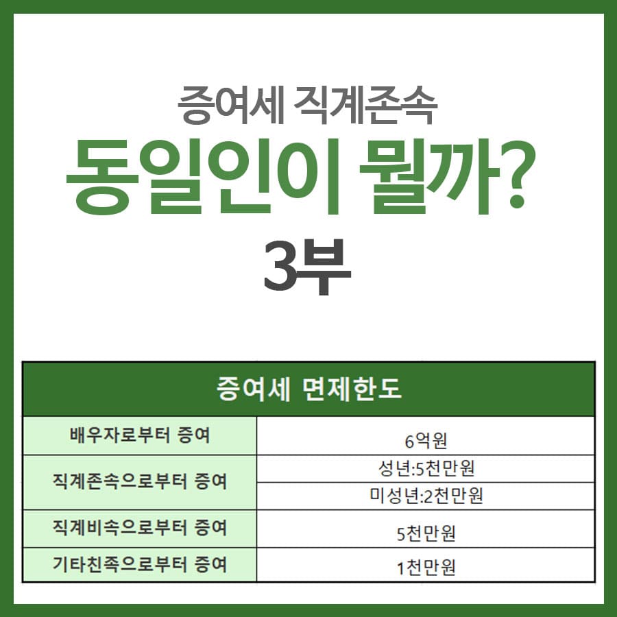 지난 포스팅들을 통해 .증여세면제한도 에 대해 알아보면서 동일인의 10년 증여공제 합산 내용을 다루고 동일인의 증여세 구하는 식들도 살펴 보았는데요.. 오늘 3부에서는 지난 리뷰에 이어서 10년 합산 동일인의 범위가 어디까지 인지에 대해 살펴 보겠습니다.