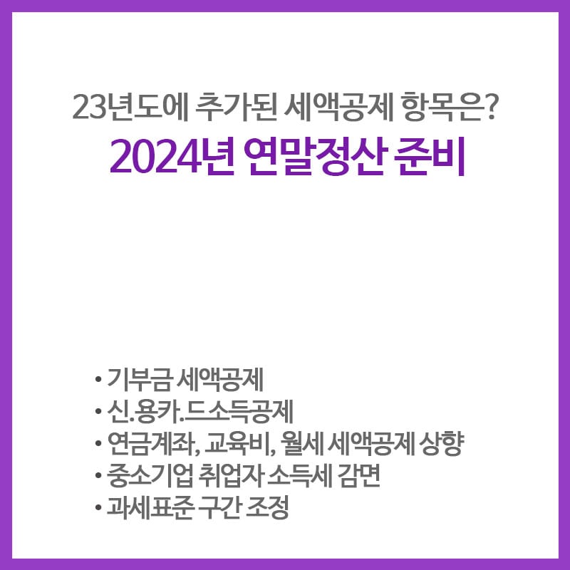 안녕하세요. 머니플라워입니다. 대망의 2024년 새해가 밝았습니다. 새해 복 많이 받으시고 올 한해도 소원하시는 모든 일들이 다 이루어지시기를 바랍니다. 이제 23년도가 저물었으니 근로자 등 직장인 분들이시라면 회사에 .연말정산 자료를 제출하셔야 할텐데요.. 24년도 1월에 진행하는 연말정산을 빠짐없이 준비하기 위해 23년도에 추가 되었던 .공제 항목들을 살펴 보겠습니다.