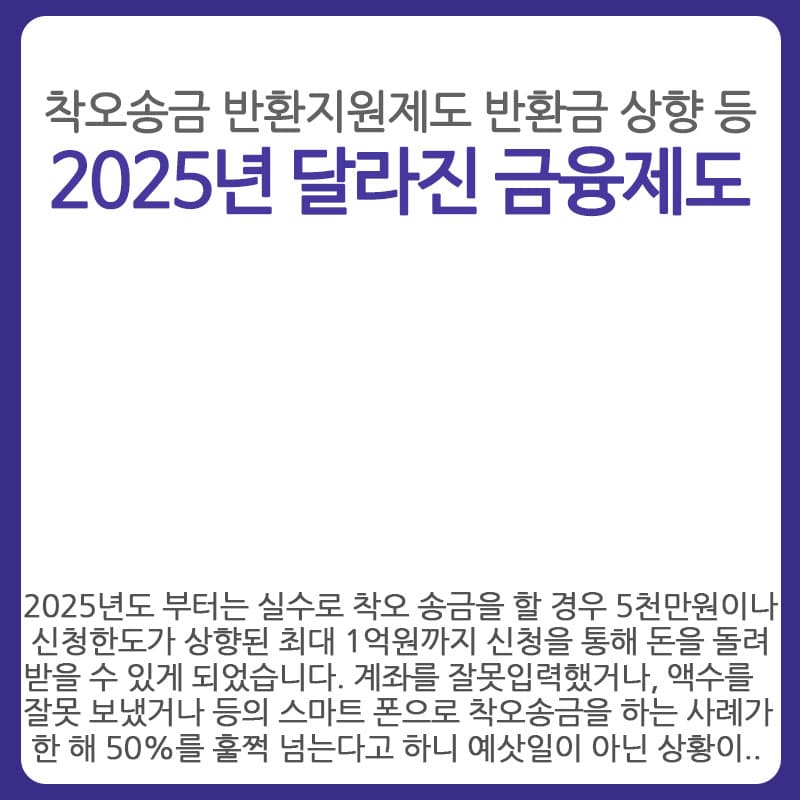 하지만 아주 반가운 소식이 있습니다. 2025년도 부터는 실수로 착오 송금을 할 경우 5천만원이나 신청한도가 상향된 최대 1억원까지 신청을 통해 돈을 돌려 받을 수 있게 되었습니다. 계좌를 잘못입력했거나, 액수를 잘못 보냈거나 등의 스마트 폰으로 착오송금을 하는 사례가 한 해 50%를 훌쩍 넘는다고 하니 예삿일이 아닌 상황이었는데요.. 다행히 올해 부터는 반환 한도가 두배나 상향되었기에 혹여 고액의 송금 실수가 발생할 경우 매우 요긴한 도움이 될 것 같습니다.