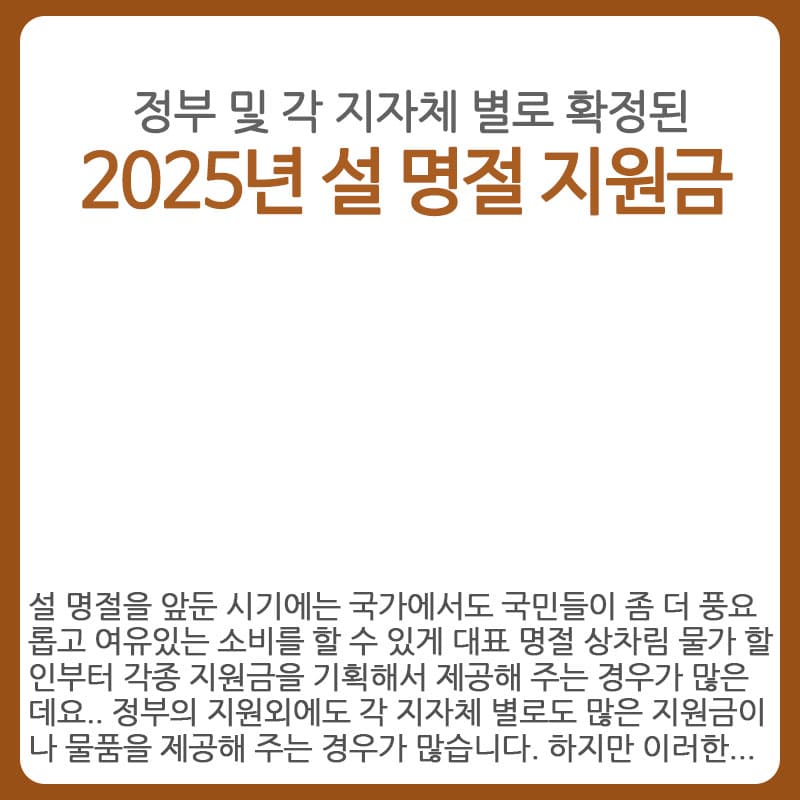 - 정부가 지원하는 확정된 2025년 설명절 지원금
