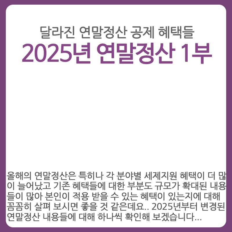 이번에는 2025년도 연말정산부터 공제 혜택을 받을 수 있게 된 변경 도니 공제 항목들에 대해 알아보겠습니다.
